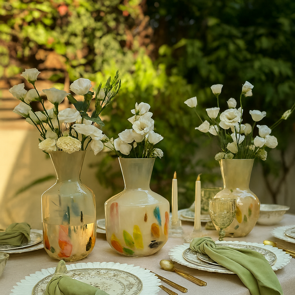 נטלה נירוסטה אמייל לבן קישוט זהב