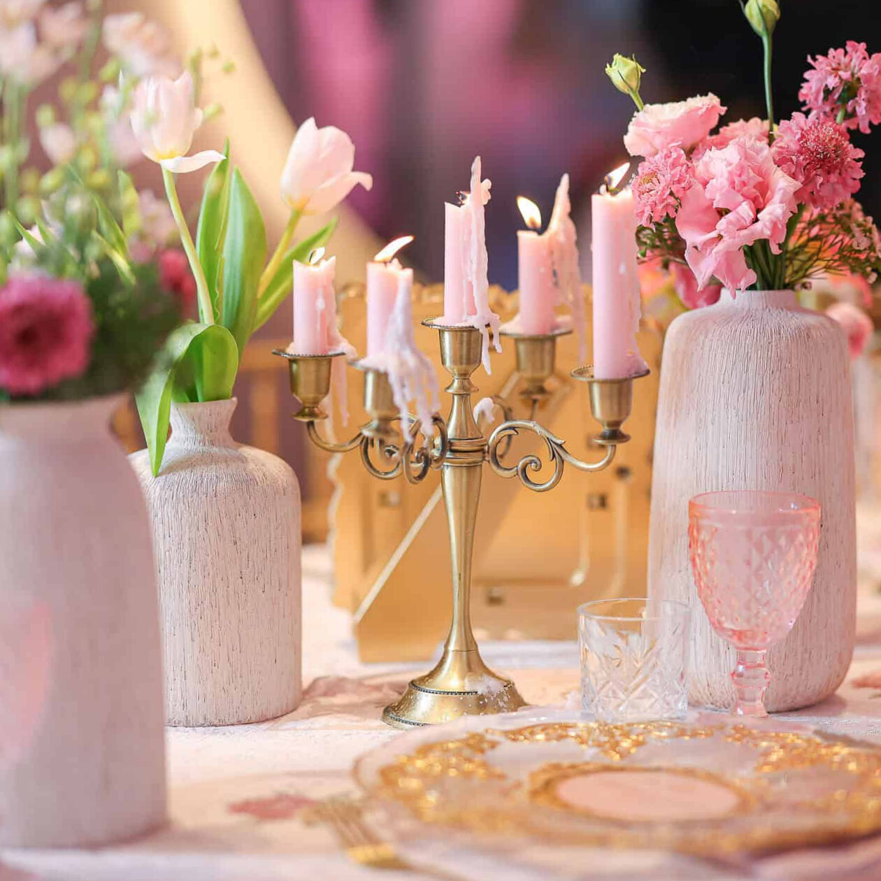 קנדלברה זהב מט 5 קנים גבוה