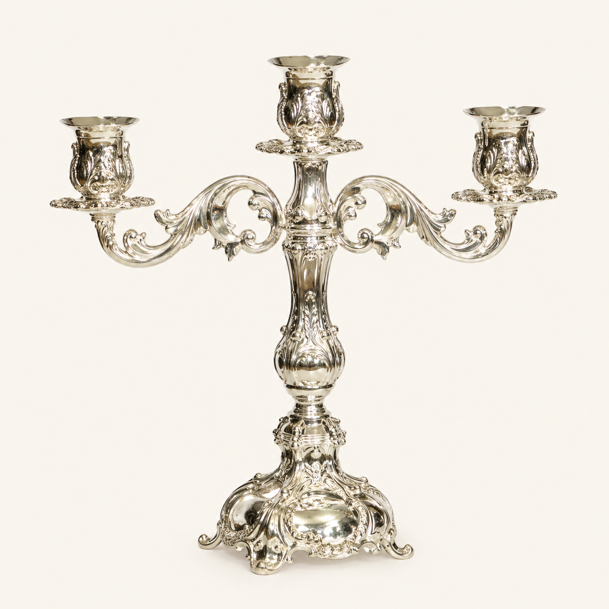 פמוט 3 קנים מהודר כסף בסיס מרובע