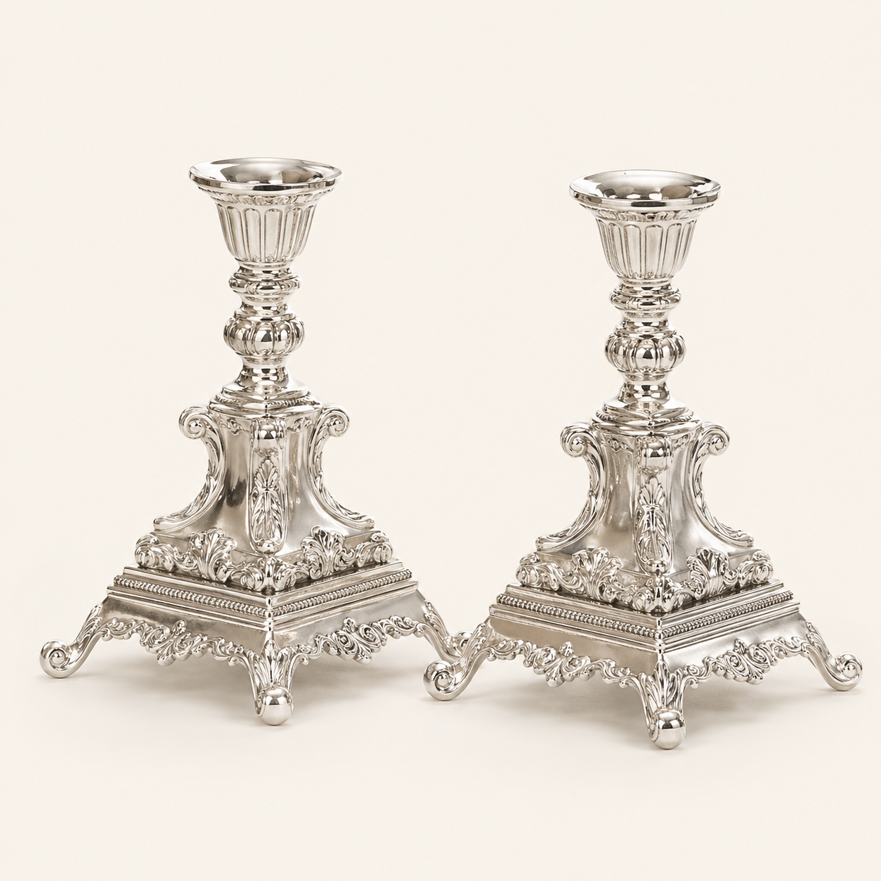 זוג פמוטים ציפוי כסף בסיס מרובע