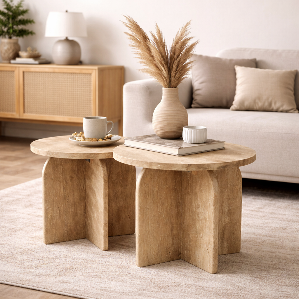 סט 2 שולחנות צד עגולים טרוורטין