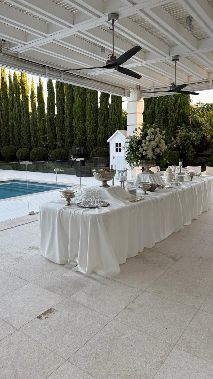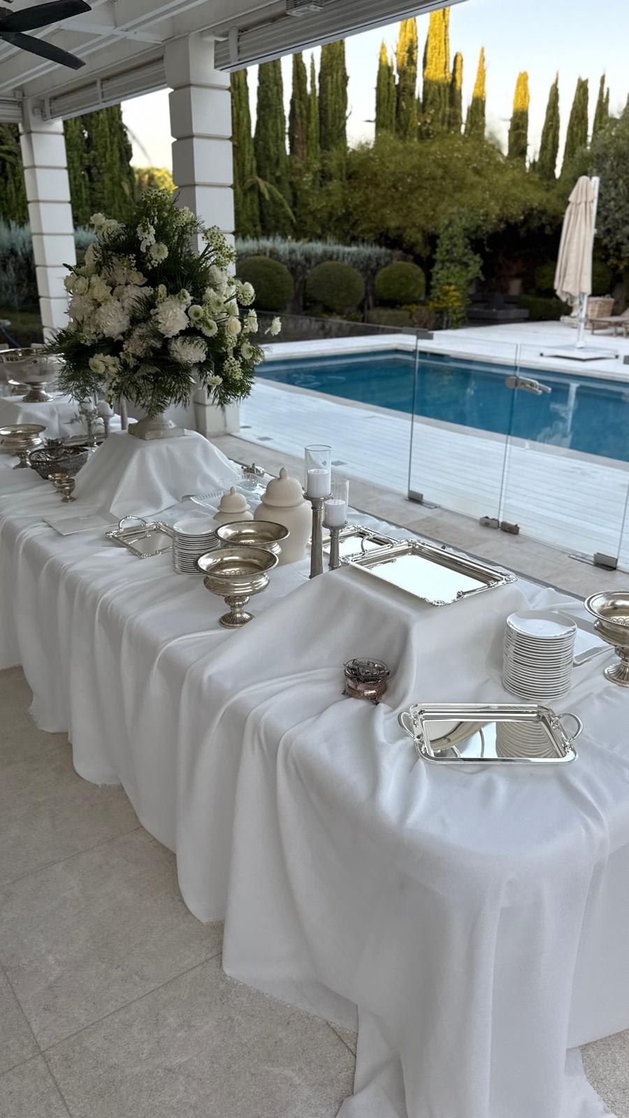 מפת מילאנו סטייל נועדה לייצר מראה “נשפך” ועשיר: היא רחבה ומוארכת מהרגיל, כך שהבד יורד אל הרצפה משני צדי השולחן