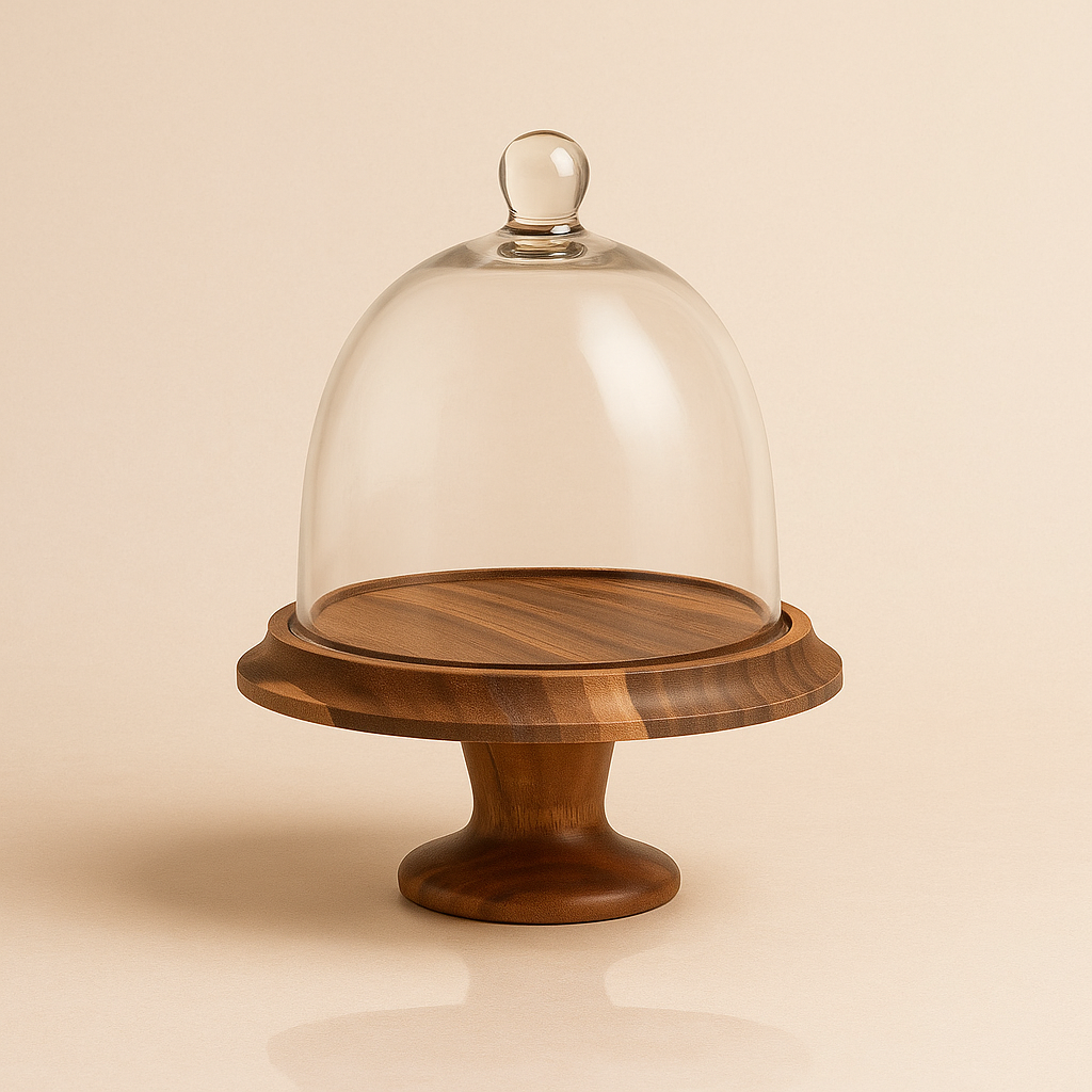 פעמון יוקרתי בעיצוב מרשים המשלב בסיס עץ טבעי עם רגל זכוכית שקופה וכיפה שקופה המעניקה תחושת קלילות ויוקרה. השילוב בין החומריות החמה של העץ למראה הזך של הזכוכית יוצר מראה הרמוני ונקי, המוסיף טאץ’ עיצובי מושלם לכל שולחן אירוח, מטבח או חלל מעוצב בבית.