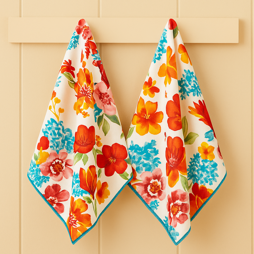 הכניסו צבע, חיים ואלגנטיות למטבח עם זוג מגבות המטבח הפרחוניות של Splendid.