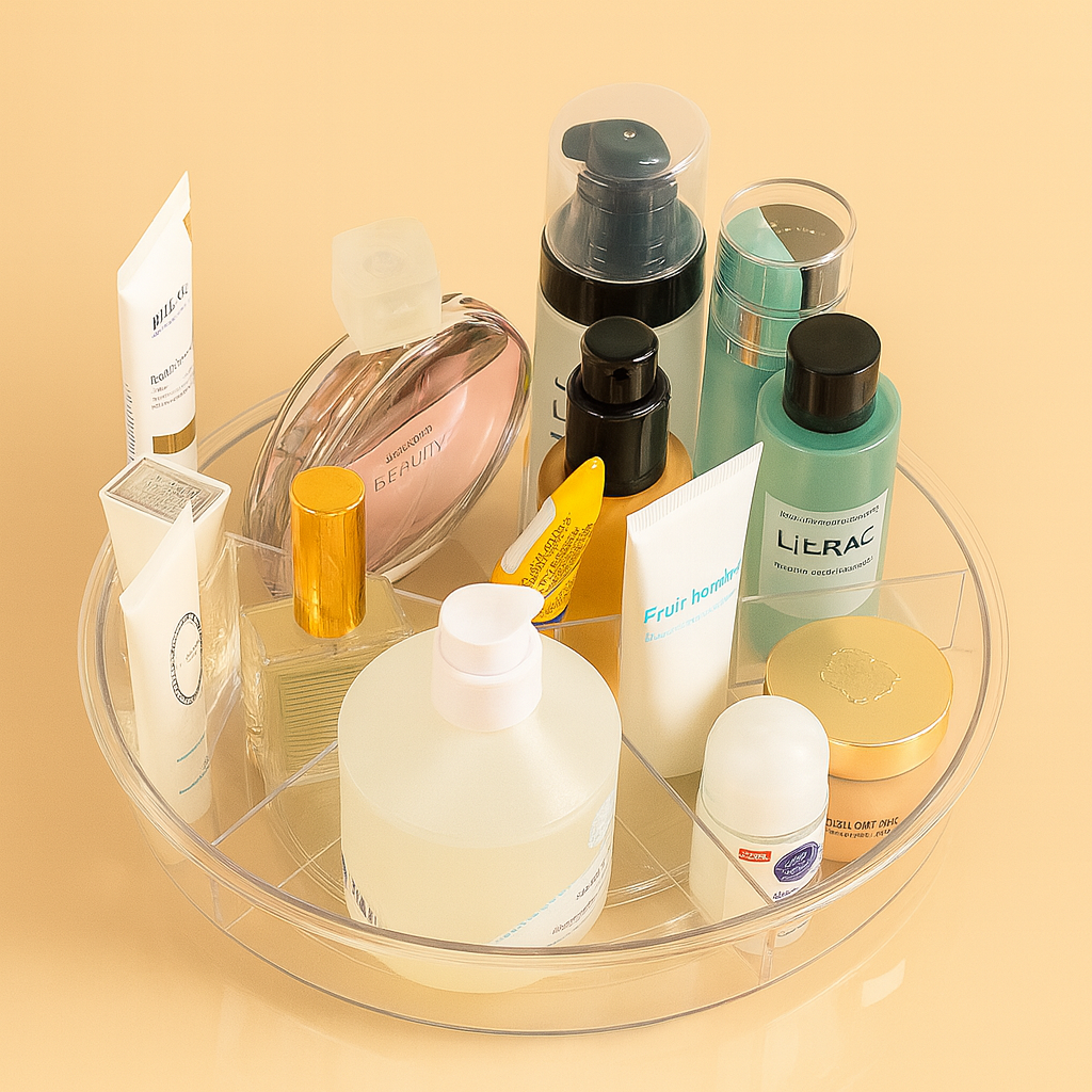מגש עגול מסתובב לארגון חכם – מתאים לאמבטיה, מקרר, שידת איפור ועוד