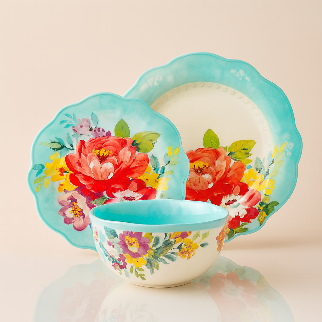 סט צלחות Blooming Grace – יופי פורח על שולחן אחד