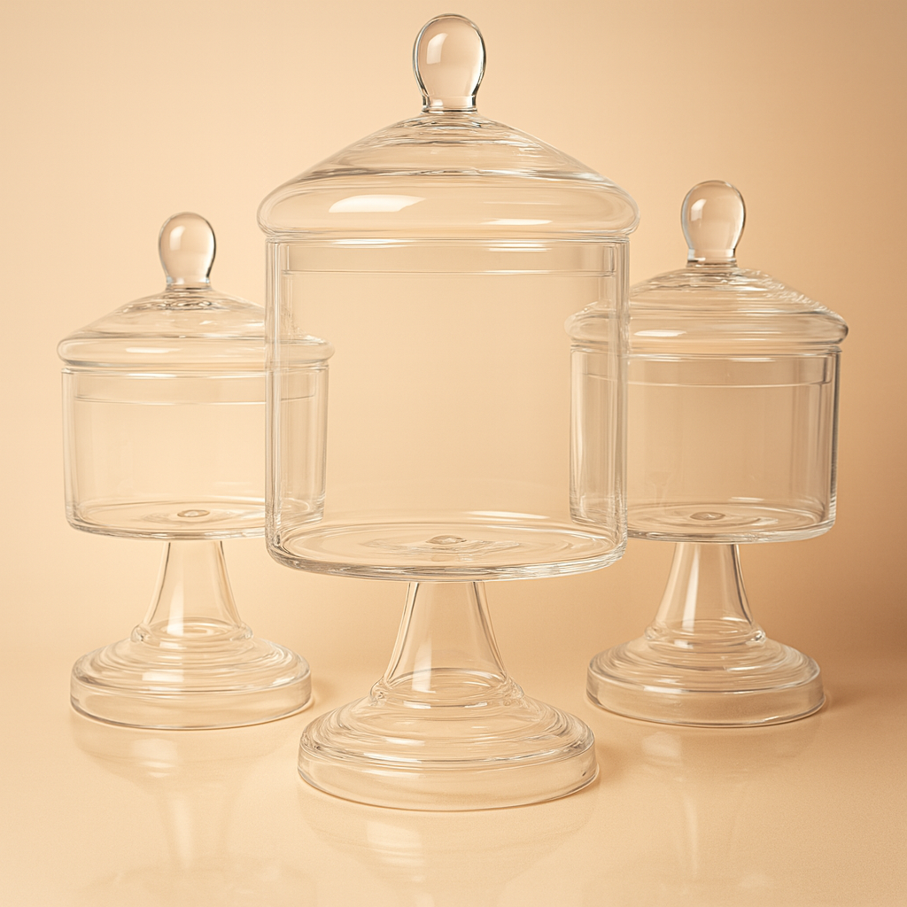צנצנות אקריליק על רגל עם מכסה – עיצוב יוקרתי לכל פינה בשלושה גדלים