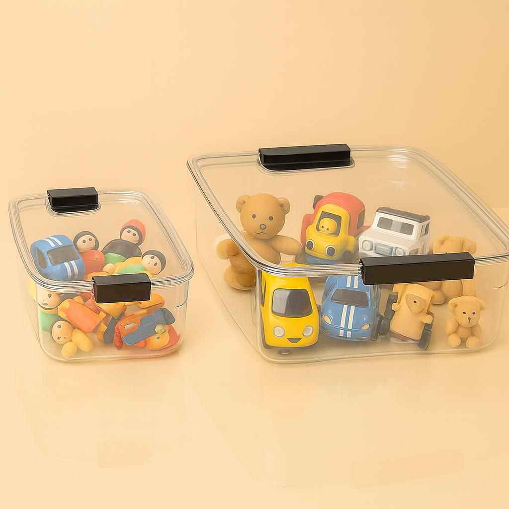 קופסת אחסון אקריליק שקופה עם סגירה הרמטית – ב-3 גדלים לבחירה
